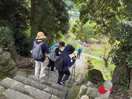 皆さん、慣れてきたのか最初の急勾配な坂もおしゃべりしながら歩き、途中の山茶花がたくさん咲いているポイントでは、
